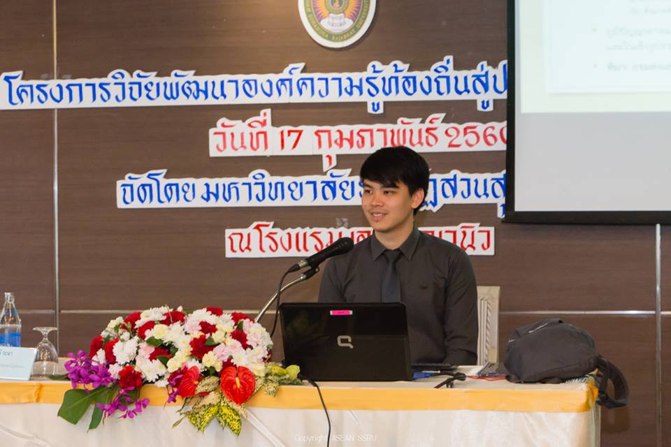 เมื่อวันที่ ๑๗ กุมภาพันธ์ ๒๕๖๐ ศูนย์การศึกษาและฝึกอบรมอาเซียน นำโดยผู้ช่วยศาสตราจารย์ สิริอร จำปาทอง ผู้อำนวยการและทีมงาน ได้จัดโครงการวิจัยพัฒนาองค์ความรู้ท้องถิ่นสู่ประชาคมอาเซียน ณ โรงแรม เอสดี อเวนิว กรุงเทพฯ โดยมี ดร.ชยุตม์ วะนา อาจารย์ประจำคณะวิทยาการจัดการ มหาวิทยาลัยราชภัฏจันทรเกษม เป็นวิทยากรในการบรรยาย ทั้งนี้เพื่อส่งเสริมการศึกษาและวิจัยองค์ความรู้ท้องถิ่น อันจะนำไปสู่การพัฒนาและต่อยอดองค์ความรู้ในอนาคต รวมถึงแนวโน้มหรือทิศทางการแข่งขันในเชิงธุรกิจจะมุ่งเน้นที่การนำเสนอภูมิปัญญาท้องถิ่นควบคู่กับการพัฒนาให้มีความโดดเด่นและความแตกต่าง ดังนั้นจึงควรส่งเสริมการพัฒนาองค์ความรู้ท้องถิ่นดังกล่าว เพื่อให้เป็นที่ยอมรับในระดับอาเซียนและนานาชาติ.